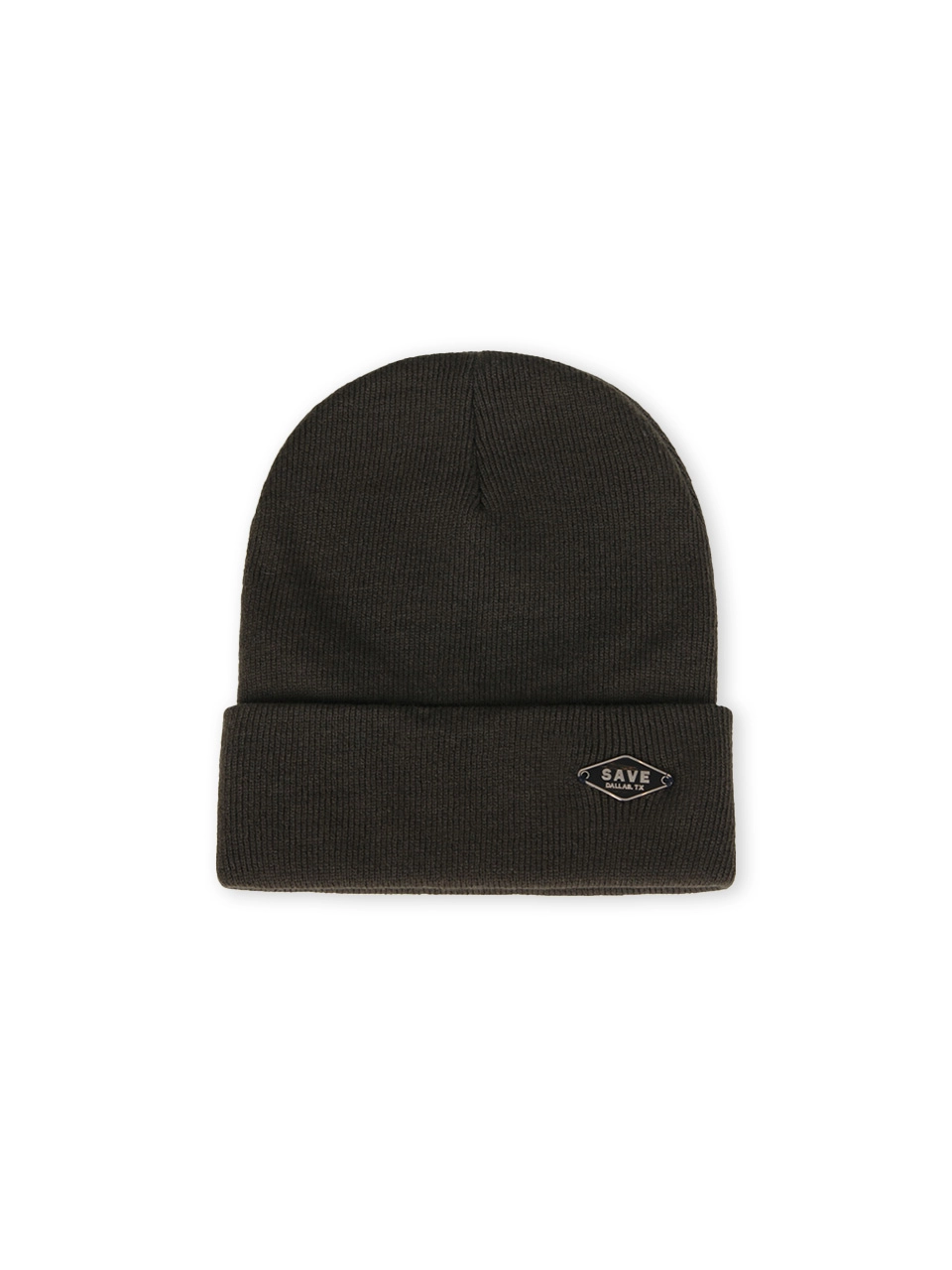 Metal Badge Knit Beanie_Khaki