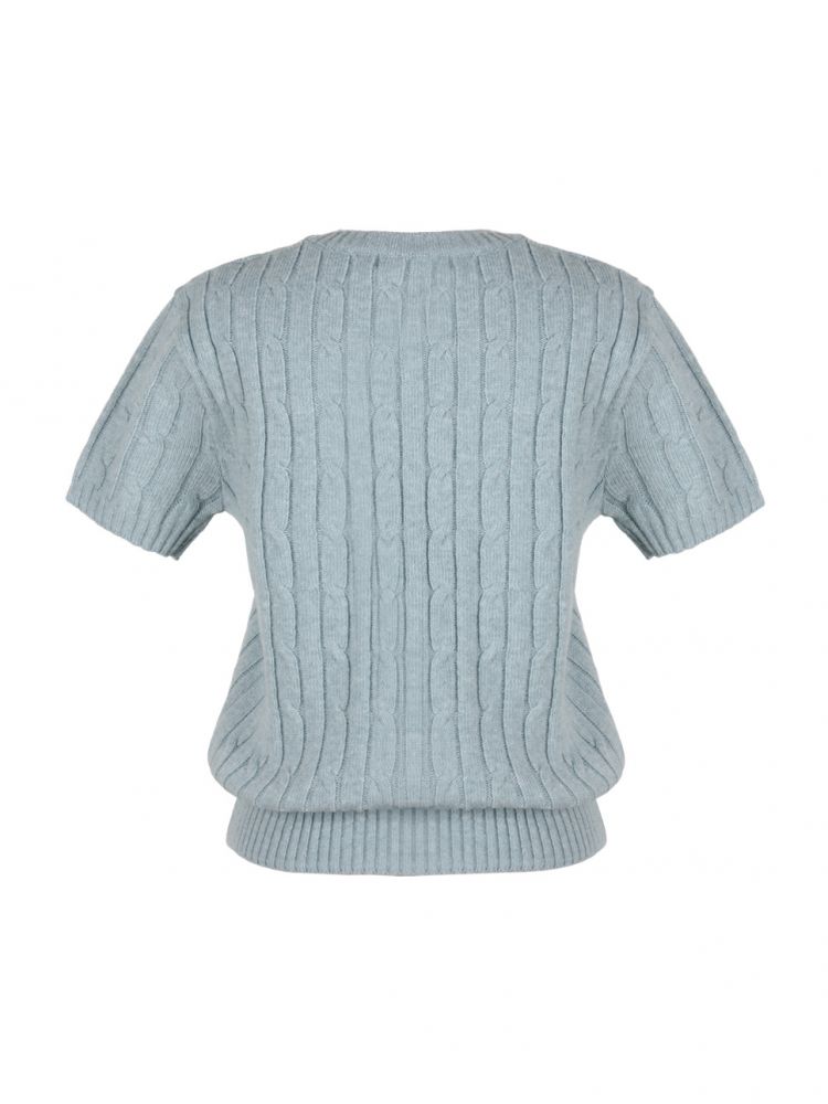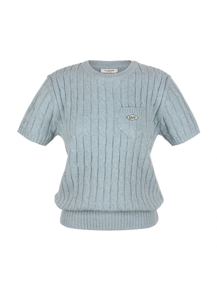 Half Pocket Metal Badge Cable Knit_Blue