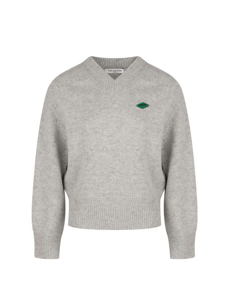 V-Neck Wool Metal Badge Knit